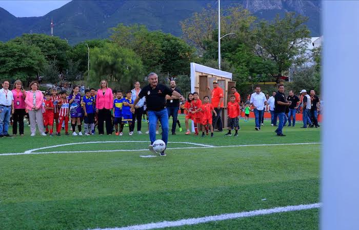 Con el objetivo de impulsar el deporte y ofrecer espacios seguros a la niñez y juventud, el alcalde Héctor García inauguró la rehabilitación integral de la cancha de futbol en la colonia Villa Olímpica, proyecto que beneficiará a miles de familias de la zona.