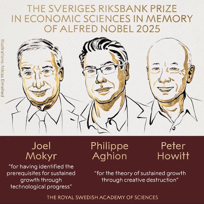 El Premio Nobel de Economía 2025 es otorgado a Joel Mokyr, Philippe Aghion y Peter Howitt