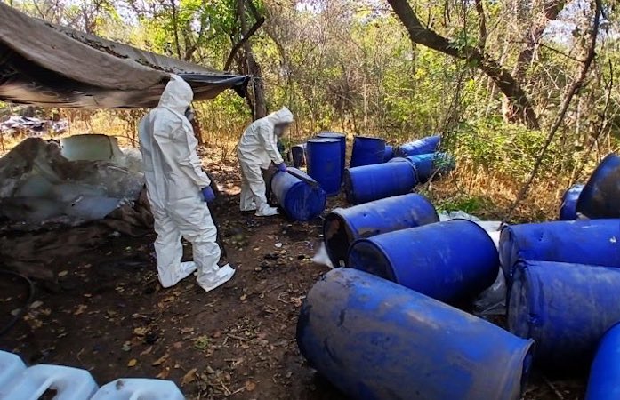 El funcionario detalló que se neutralizó un laboratorio clandestino con más de 3.400 litros y una tonelada de precursores químicos. “En Cosalá [también municipio de Sinaloa] se destruyó un área de concentración con 1.550 litros y 275 kilos de sustancias químicas”, ahondó en su mensaje.