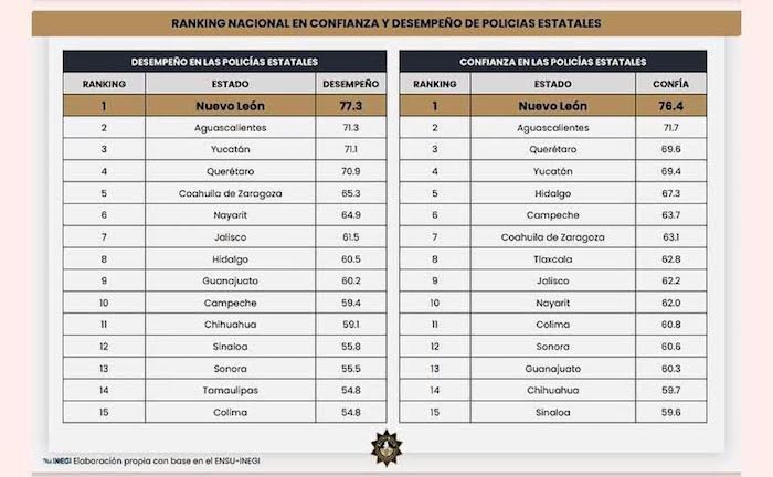 Estos indicadores consolidan a Fuerza Civil como la policía estatal con mayor reconocimiento en México, posición que logró por primera vez en su historia en la medición anterior.