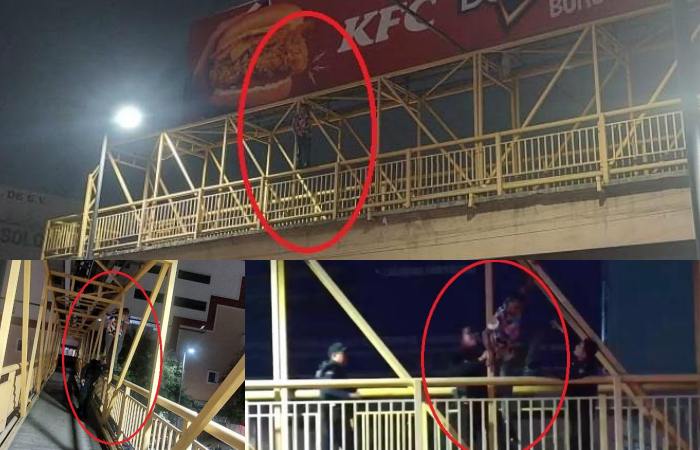 Policía de Monterrey evita suicidio en puente peatonal del centro