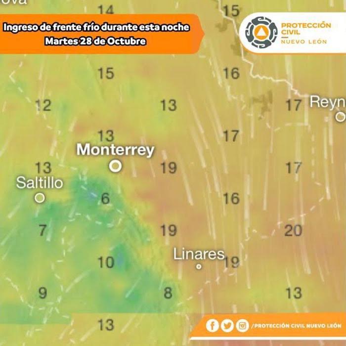 La llegada del frente frío número 11 traerá un cambio drástico en las condiciones climáticas de Nuevo León, con lluvias, rachas intensas de viento y un marcado descenso en la temperatura, informó Protección Civil estatal con base en el reporte del Servicio Meteorológico Nacional.