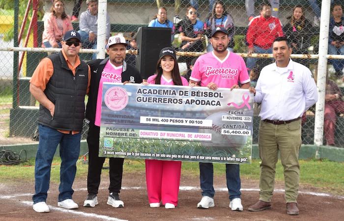 Con un gesto solidario que refleja el poder del deporte y la unión comunitaria, la presidenta del DIF Apodaca, Vianey Zambrano de Garza, recibió un donativo de 56 mil 400 pesos por parte de la Academia de Béisbol Guerreros México, destinado a fortalecer las acciones contra el cáncer de mama.