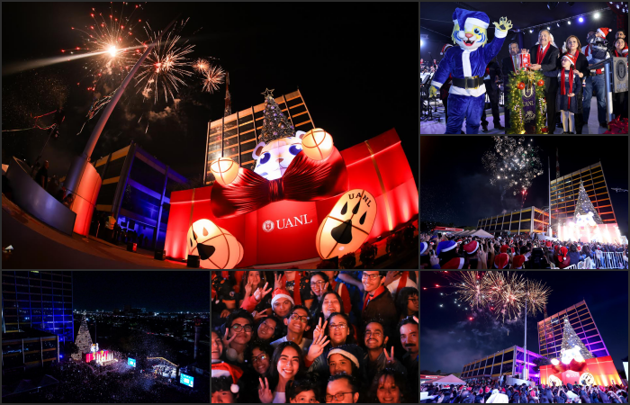 La Universidad Autónoma de Nuevo León celebró el inicio de la temporada decembrina con el tradicional encendido del pino navideño, un evento que reunió a cerca de ocho mil estudiantes, docentes, trabajadores y sus familias en Ciudad Universitaria.