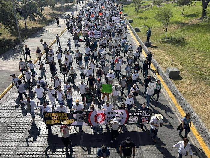 El contingente avanzó por la calle Zaragoza, desde Washington, a espaldas del Palacio de Gobierno, para luego rodear el Palacio Municipal y regresar por Zuazua hasta la Explanada de los Héroes, donde llevaron a cabo su concentración final.