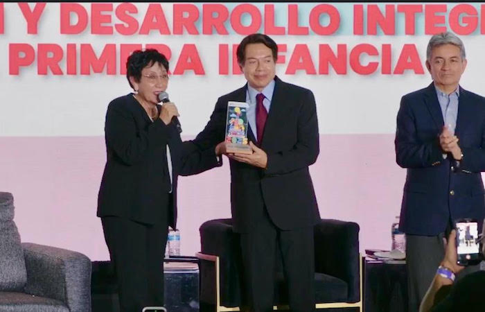 Tras su intervención ante más de mil quinientas educadoras provenientes de México y distintos países, el Secretario recibió un reconocimiento de la maestra Lupita Rodríguez Martínez, directora general de los CENDI y presidenta del comité organizador. En la ceremonia estuvieron presentes el senador Alberto Anaya Gutiérrez, así como los legisladores Perla Villarreal Valdez y Jesús Alberto Elizondo Salazar.