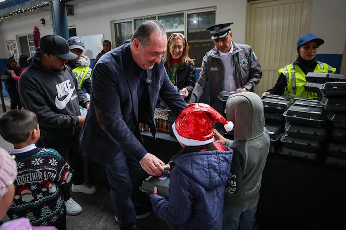 El inicio de las celebraciones navideñas también llegó a la zona de Los Pinos, donde la Secretaría de Seguridad Pública encendió el pino navideño de la escuela primaria Francisco González Bocanegra. Más de 180 estudiantes participaron en la actividad organizada por la Policía Vial, que buscó acercar a los menores al trabajo que realizan los elementos de seguridad en la comunidad.