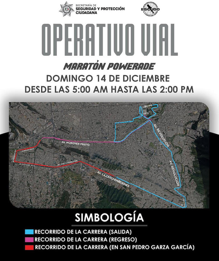 Con el objetivo de garantizar la seguridad de los participantes y agilizar la movilidad en la ciudad, la Dirección de Vialidad y Tránsito de Monterrey pondrá en marcha un operativo especial este domingo 14 de diciembre, con motivo de la realización del Maratón Powerade.