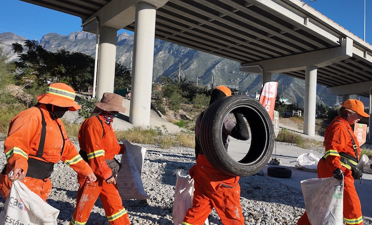El programa Leones en Acción, coordinado por la Secretaría de Participación Ciudadana, realizó este sábado una nueva jornada de limpieza en el Río Santa Catarina, donde se recolectó más de media tonelada de residuos, cifra que se suma al acumulado de 58.7 toneladas y 788 llantas retiradas del cauce desde que inició la intervención.