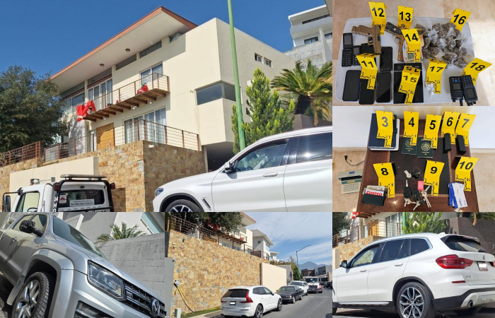 La Agencia Estatal de Investigaciones desplegó un operativo en la colonia Sierra Alta, en Monterrey, que derivó en la detención de tres hombres y el aseguramiento de armas de fuego, presunta droga y diversos objetos vinculados con actividades ilícitas.