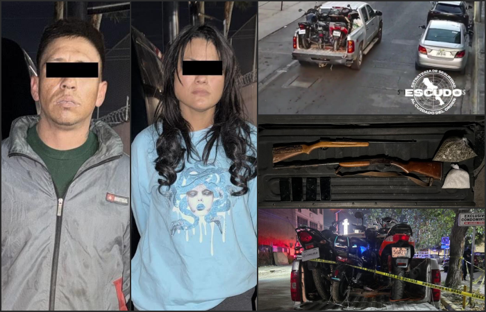 La detención se registró en el cruce de Antillón y Héroes del 47, frente a los Condominios Constitución, alrededor de las 18:30 horas. Los ahora detenidos fueron identificados como Jorge S., de 42 años, y Brenda Sarahí, de 31.