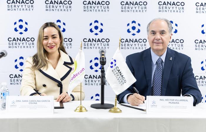 La firma del acuerdo estuvo a cargo del Director General de CANACO Monterrey, Ing. Héctor Villarreal Muraira, y de la Delegada de PRODECON en Nuevo León, Dra. Sara Carolina García Osuna. En el acto también participaron el Presidente de la Comisión Fiscal de CANACO Monterrey, C.P. Mario Pitones Ploneda, y el Subdelegado de PRODECON en la entidad, Mtro. Juan Carlos Castañeda Vázquez.