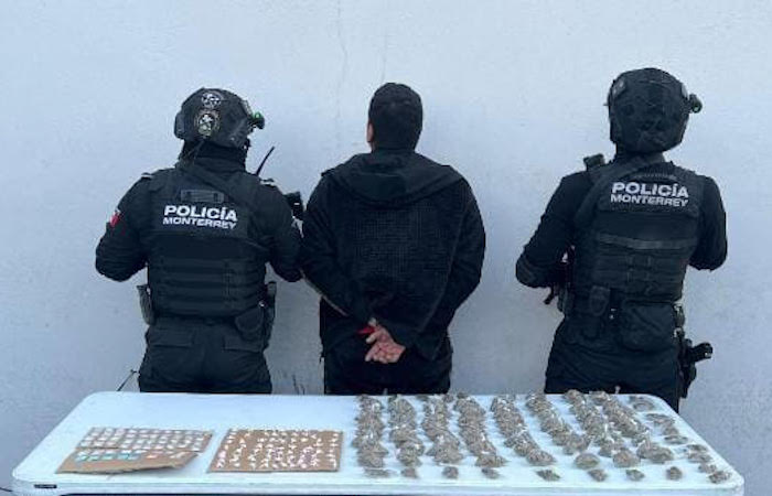 Un menor de edad fue detenido por elementos de la Policía de Monterrey al ser sorprendido en posesión de más de 200 envoltorios con sustancias similares a distintas drogas, durante un operativo de vigilancia en el centro de la ciudad, en el área conocida como el Mesón Estrella.