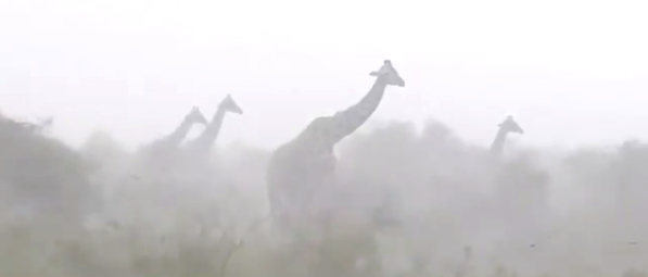 Todo un ejemplo de ello son las jirafas de Kenia, que resistieron con firmeza una fuerte tormenta sin moverse del lugar.