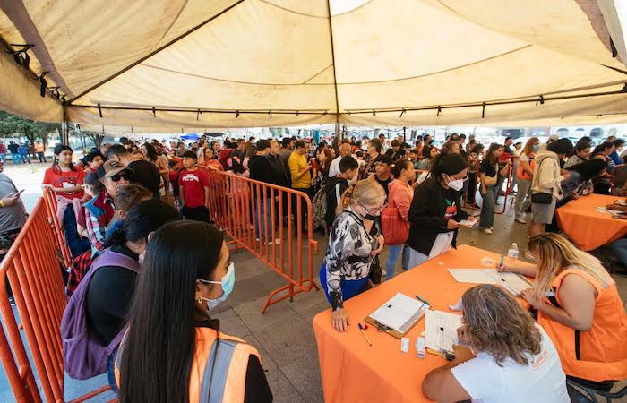 Cientos de ciudadanos acudieron a la Plaza Principal de Guadalupe para participar en la macro brigada de vacunación organizada por el municipio, como parte de la campaña nacional contra el sarampión y otras enfermedades estacionales.