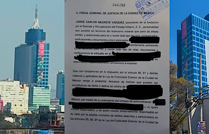 Uno de los casos señalados se ubica en la colonia Nápoles, en la alcaldía Benito Juárez, donde un anuncio cubre parte del World Trade Center con una estructura que alcanza alrededor de 40 pisos de altura. Ante esta situación, la Fundación por el Rescate y Recuperación del Paisaje Urbano interpuso una denuncia ante la Fiscalía General de Justicia de la Ciudad de México contra el propietario del inmueble y las empresas involucradas, tanto la responsable de comercializar el espacio como la marca anunciada.