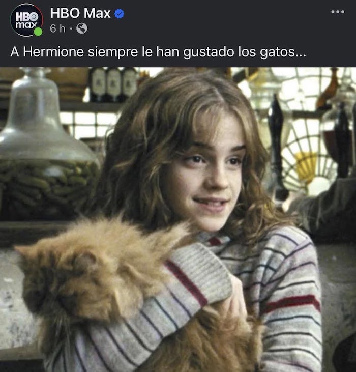 Aprovechando el pasado de Emma y la indirecta bien directa que Gonzalo recibió por parte de Belinda, HBO Max publicó un meme con la pícara frase “A Hermione siempre le han gustado los gatos”….sí fue la página oficial de HBO Max para Latinoamérica pero a pesar de las risas que provocó, la publicación fue eliminada.
