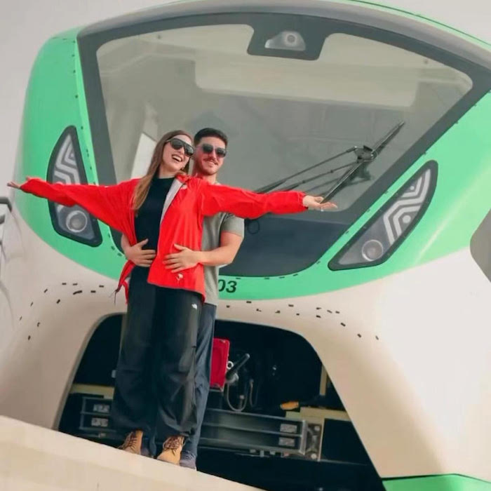 Durante el recorrido, el gobernador y su esposa develaron uno de los monorrieles instalado sobre la primera trabe de estacionamiento en los Patios y Talleres de las nuevas líneas.