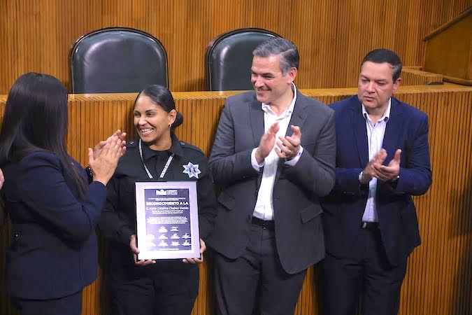 El Congreso del Estado de Nuevo León entregó un reconocimiento a la oficial Karla Catalina Chairez Cortés, elemento de la Policía de San Nicolás, luego de que su actuación al aplicar protocolos de seguridad para proteger a menores se volviera viral en redes sociales el pasado mes de enero.