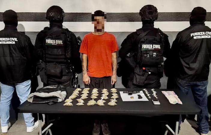 Al circular por la calle Ocote, los policías ubicaron a un individuo cuyas características coincidían con las descritas en la denuncia, por lo que se aproximaron para verificar la situación. Al percatarse de la presencia de la autoridad, el adolescente intentó huir brincando una barda, sin embargo, fue alcanzado y detenido por los elementos estatales.