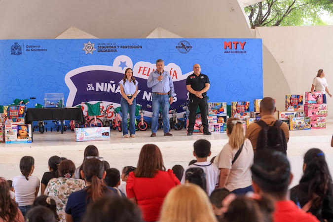 En el marco del Día del Niño, el municipio de Monterrey organizó un festejo para las hijas e hijos de elementos operativos de la Secretaría de Seguridad y Protección Ciudadana de Monterrey.